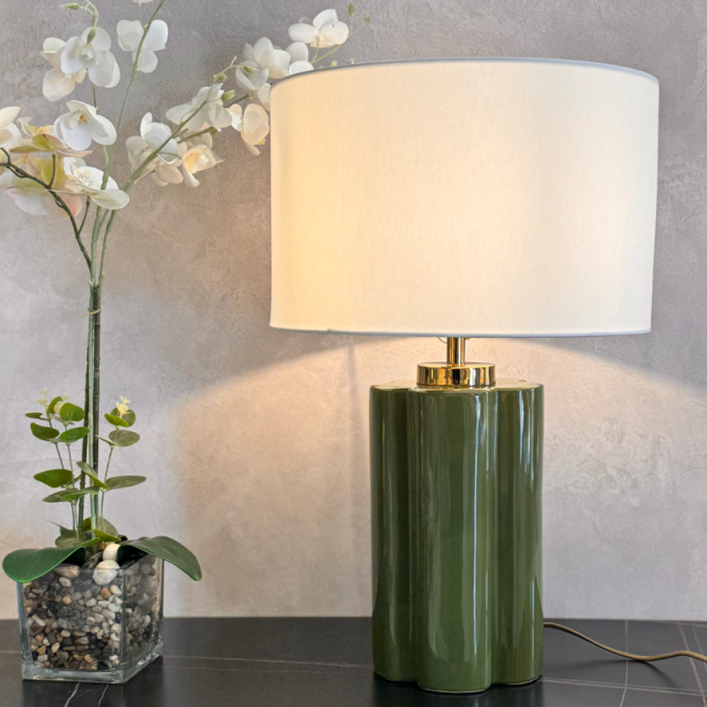 يجمع هذا التصميم بين صلابة السيراميك ورُقي المعدن ، بينما يكمّله غطاء قماشي ناعم يوزّع الإضاءة بلطف، ليخلق أجواء دافئة ومريحة. مثالية لإضفاء لمسة فخامة على غرف النوم، المعيشة، أو حتى زوايا العمل الراقية.