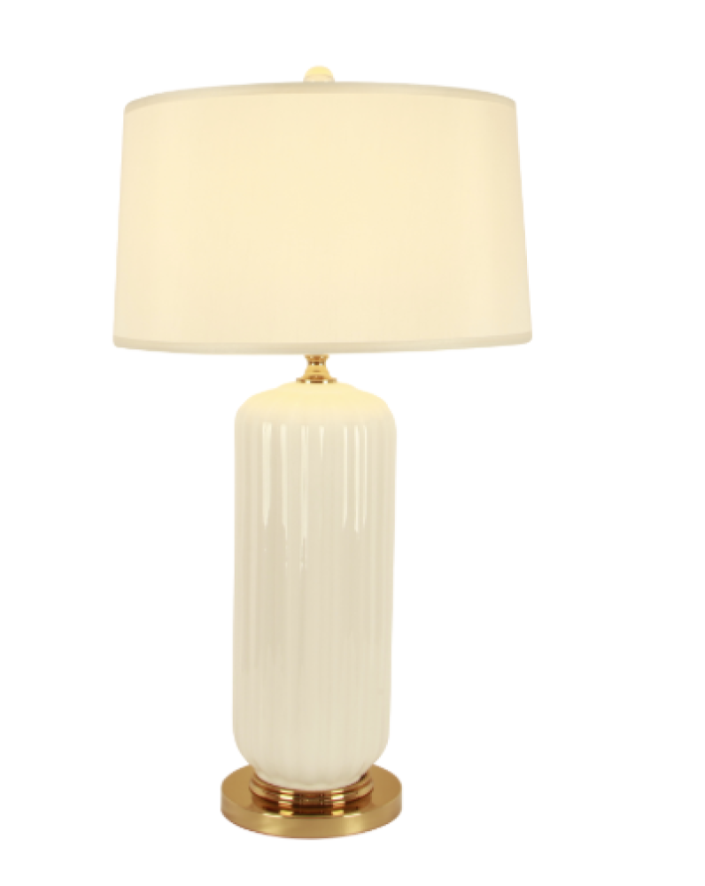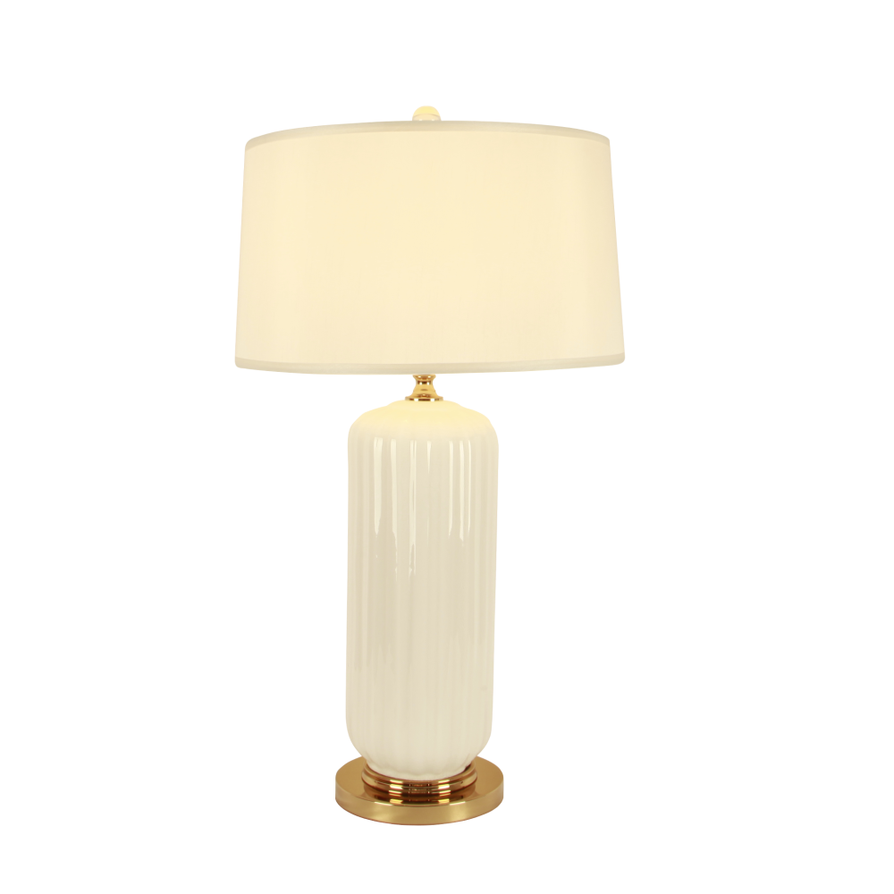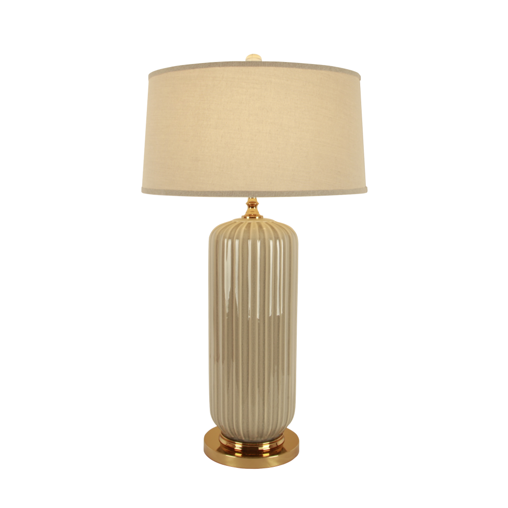 يجمع هذا التصميم بين صلابة السيراميك ورُقي المعدن ، بينما يكمّله غطاء قماشي ناعم يوزّع الإضاءة بلطف، ليخلق أجواء دافئة ومريحة. مثالية لإضفاء لمسة فخامة على غرف النوم، المعيشة، أو حتى زوايا العمل الراقية.