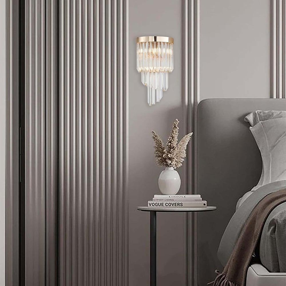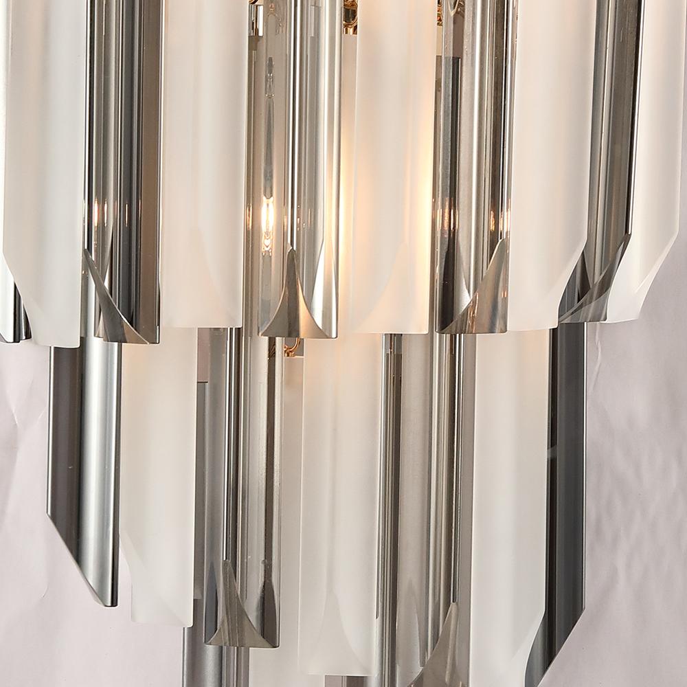 تتناغم الخامات الفاخرة من المعدن المصقول والزجاج الفاخر واللمسات ا الناعمة لتمنح الأبجورة حضورًا أنيقًا يُبرز تفاصيل الجدران ويُكمل ديكور المساحة بأسلوب راقٍ ومتزن.