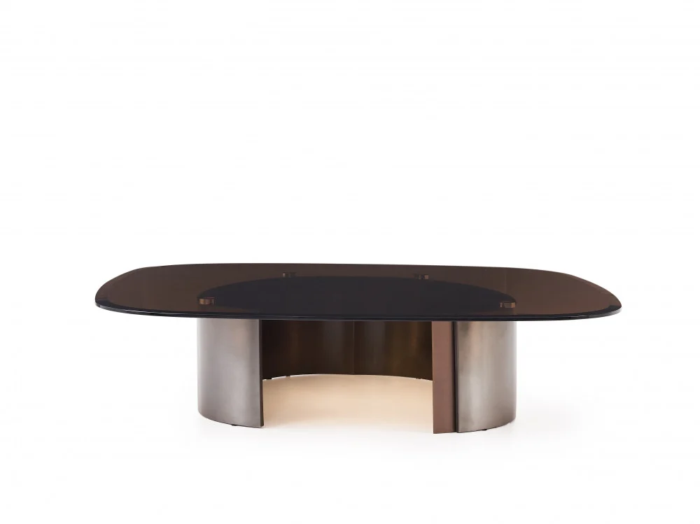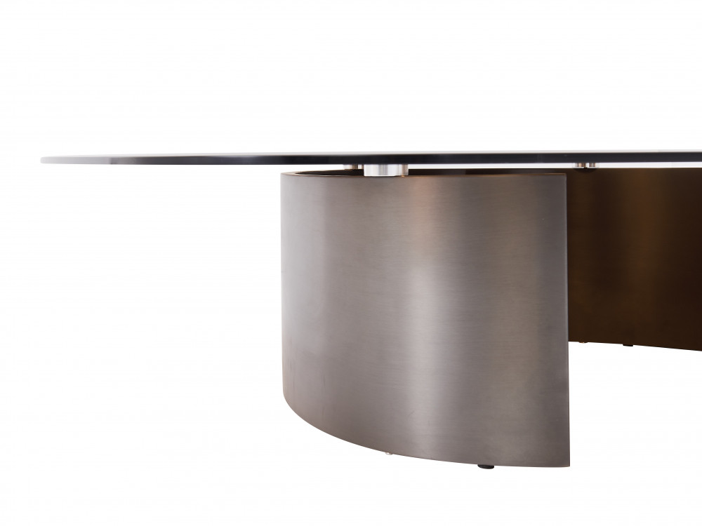 تفاصيل المنتج:-الطراز/ عصريالألوان/ بنيالفئة/ طاولة قهوة بتصميم عصريمادة الصنع/ زجاج + الفولاذ المقاوم للصدأالأبعاد والوزن:-الطول/ 28 cmقطر الطاولة/ 120 cm