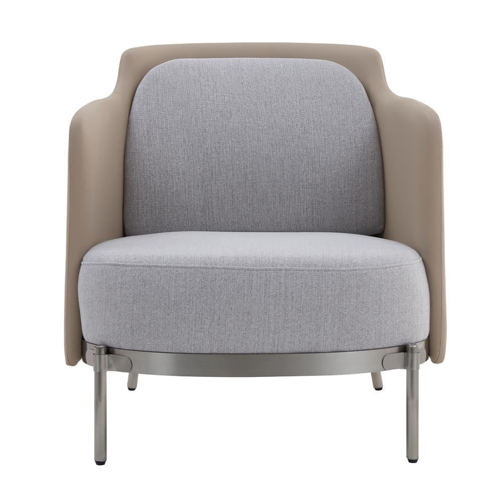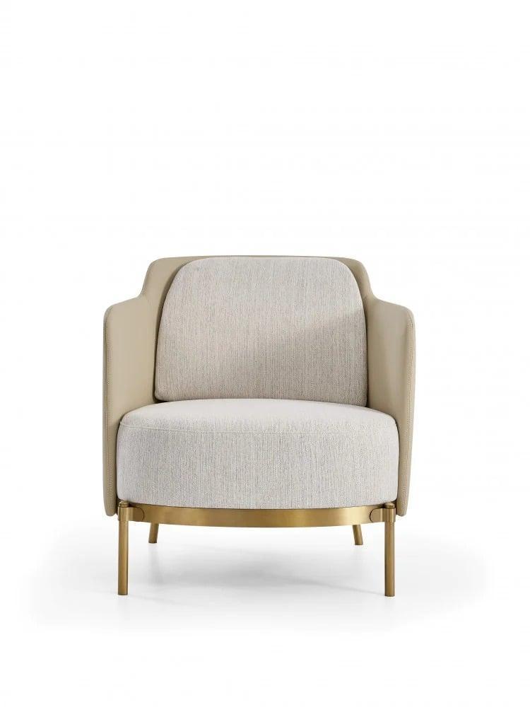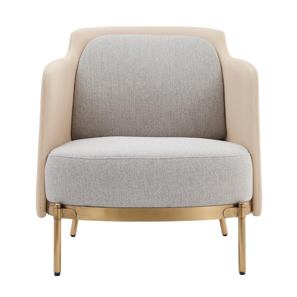 كرسي مفرد بذراعين قاعدة ذهبية قماش داخلي رمادي