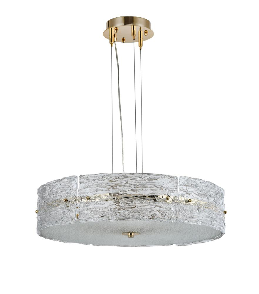 تتدلّى الكريستالات المصقولة بانسيابية تُحاكي تدفق الضوء، بينما تضفي القاعدة المعدنية حضورًا أنيقًا ومتينًا يناسب مختلف أنماط الديكور الداخلي.