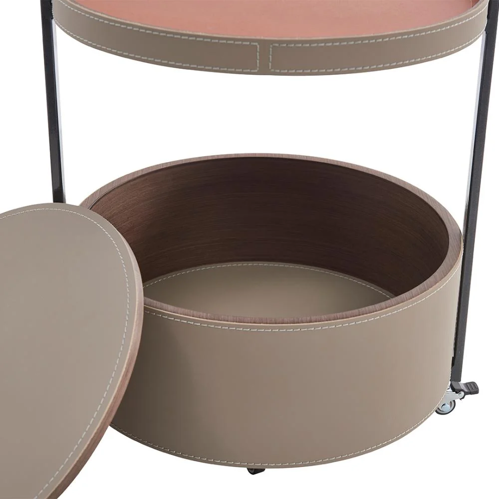 Elevate your hospitality experience with a serving table that combines elegant design with smart functionality. It features polished leather details that add an attractive sheen, while a sturdy metal frame with sophisticated finishes gives it a modern presence suitable for the most sophisticated spaces.