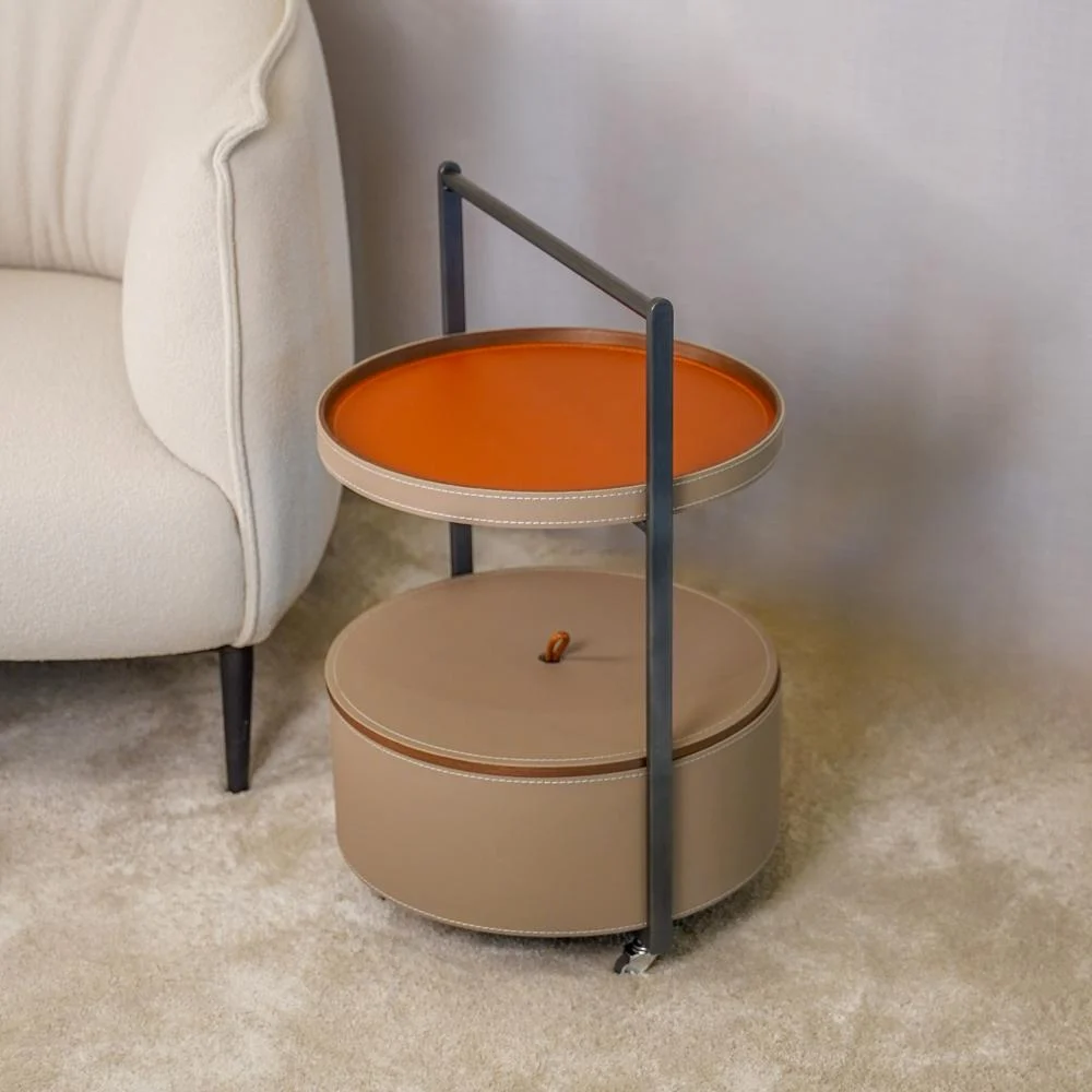 Leather and metal accent serving table - practical luxury with a striking presence